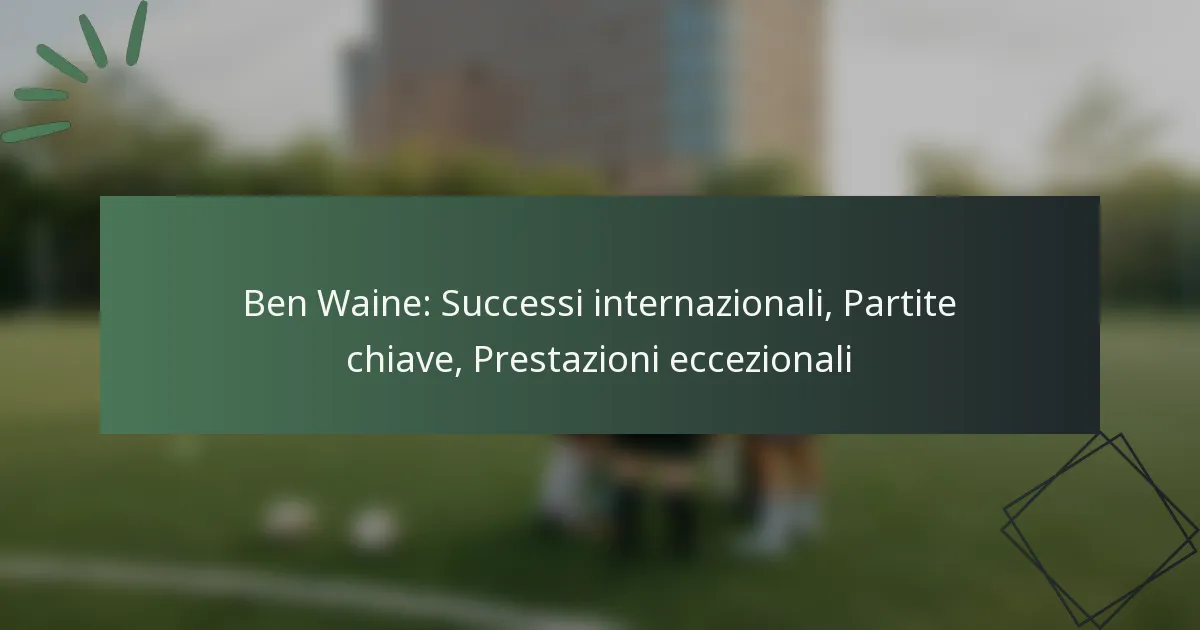 Ben Waine ha fornito diverse prestazioni di spicco che evidenziano le sue abilità e il suo impatto in campo. La sua capacità di segnare gol cruciali e assistere i compagni di squadra lo ha reso un giocatore chiave nelle partite internazionali.